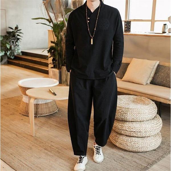 楽天市場 夏 セットアップ メンズ 刺繍 上下セット 大きいサイズ ゆったり 丸首 夏物 春夏 ホワイト ブラック セットアップ チャイナ風 メンズ 2色 Leadlife Shop